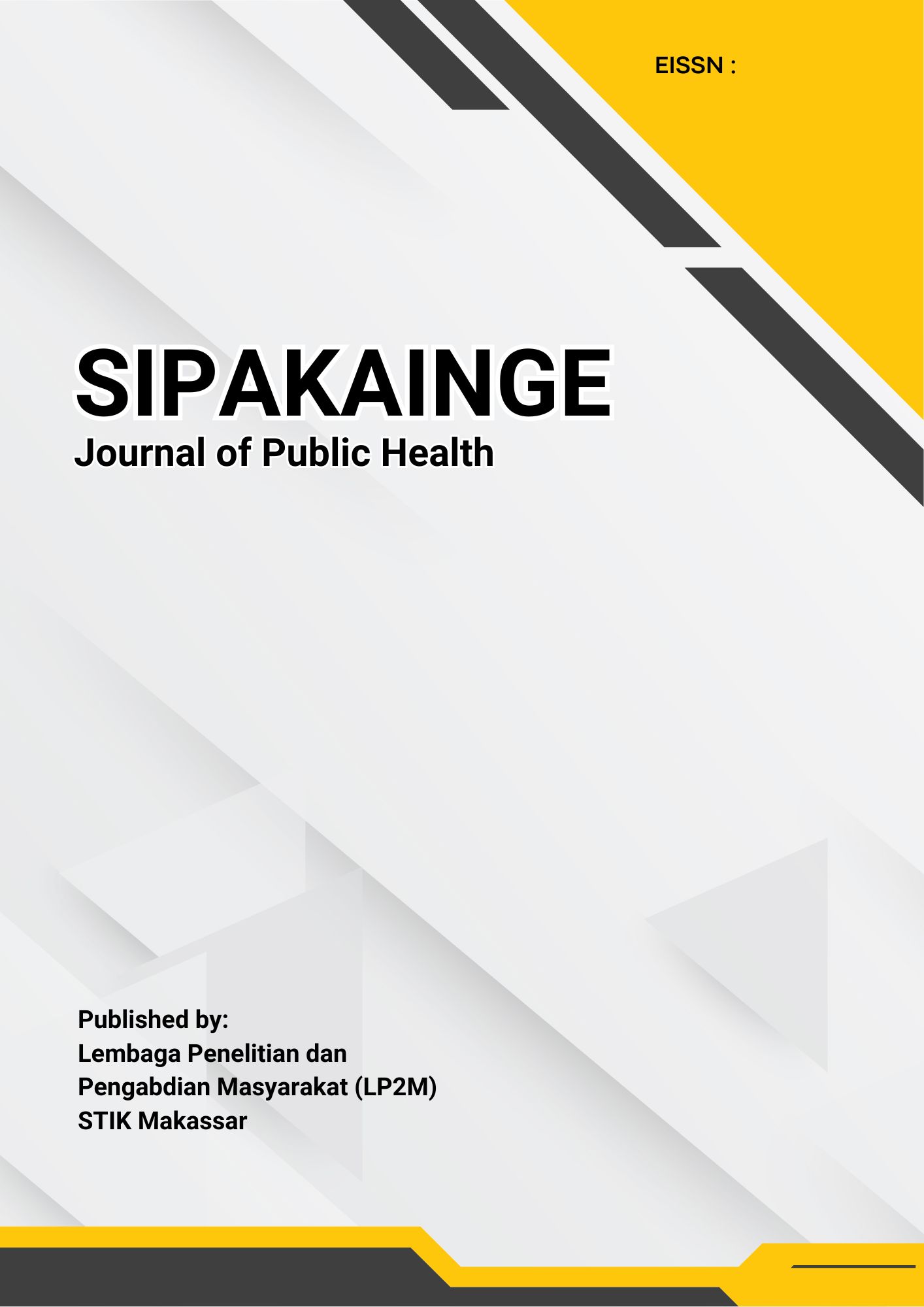 Sipakainge Journal of Public Health merupakan jurnal berkala ilmiah yang diterbitkan setiap enam bulan sekali pada bulan Januari dan Juli. Jurnal ini menerima tulisan ilmiah berupa laporan penelitian (original article), review dan hasil-hasil pemikiran ilmiah dengan fokus dan scope meliputi Epidemiologi, Biostatistik, Pendidikan dan Promosi Kesehatan, Kesehatan Lingkungan, Kesehatan dan Keselamatan Kerja, Administrasi Kebijakan Kesehatan, Manajemen Rumah Sakit, Gizi Kesehatan Masyarakat dan Kesehatan Reproduksi.